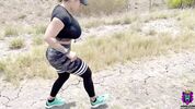 Бегунья с огромными дойками и здоровенной жопой ебется в парке стоя.