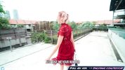 Русский блогер трахает фанатку на крыше торгового центра, над классным парком. Чувак собственно ничего пошлого на своём канале по показывал раньше, но решил, что если у него есть такая горячая подписчица, в красном платье, которая не носит трусы, то можно оставить свой автограф на её заднице, выебать и кончить в рот.