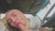 Блондинка не нашла для минета места лучше, чем машина. В тачке она удобно располагается рядом с водилой и широко раскрывает рот, чтобы сделать минет. Она обсасывает член, оттопырив кверху упругую задницу в трусиках, а в конце направляет струю спермы себе в рот, чтобы по полной насладиться оральным сексом.