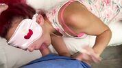 Будет рыжую девушку в маске для сна и сует хуй в рот.