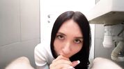 Теги: секс в туалете, темные волосы, делаю минет, русские диалоги в порно, кончает в рот.