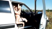 Поездка стала намного веселее, когда к нему в машину подсела симпатичная русская попутчица. Он и не просил об оплате проезда, но деваха сама оказалась озабоченной. Предложила остановиться на природе и потрахаться. Чувак ебет девку стоя, после чего она седлает его член в машине и получает сильный оргазм!