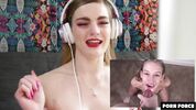 Молодая стримерша в красных трусиках дрочит на порно-ролики и кончает.