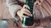 Дрочка хера резиновой пиздой и окончание на пушистый халат соседки.
