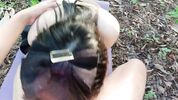 Гуляя по парку, эта шаловливая парочка присмотрела себе укромное местечко и устроилась потрахаться. Их совершенно не заботит, что этот уголок природы, хоть и похож на лес, но всё равно представляет собой парк, то есть, общественное место. А это значит, что в любой момент здесь кто-то может появиться. Но чувак всё равно беззаботно ебет мохнатку своей сисястой бабенции в комбидрессе и кончает в щель.
