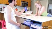 Ебля и минет на кухонном столе с молодой симпатичной блондинкой.