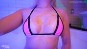 Сексуальная леди с большой красивой попкой и аппетитными загорелыми сиськами устраивает эротическое шоу в пенной ванне в интимной обстановке. Она показывает красивую круглую попку в крошечных трусиках от бикини и аппетитные загорелые сиськи. Она плещется в воде, и ее влажное тело эротично блестит в неоновом свете.