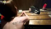 Мачеха повадилась подглядывать за тем, как ее пасынок моется в русской бане. Он спалил, что она подсматривает, но ругаться не стал, а просто предложил ей присоединиться. Женщина отказаться не смогла и сделала парню минет. После этого они беззаботно ебутся в сауне стоя.