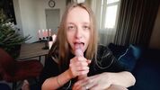 Худая русская студентка не устояла перед большим членом и исполняет минет.