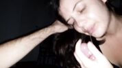 Испанка с длинными ресницами обалденно делает минет и высасывает всю сперму.