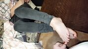 Пока жена ждёт любимый сериал, а муж-футетишист дрочит хуй об её ноги.