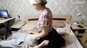 Женатик пришел к русской соседке за солью и начал заглядывать ей под юбку. Он узнал, что девушка встречается год с парнем, ну и сам признался, что есть жена, которая не дает. Симпатичная девчонка поняла, что тут можно получить секс и тут же раздвинула ножку. Парень делает ей куннилингус, а потом трахает в спальне. Он кончает на лобок и тут же приходит к осознания, что изменяет жене. После этого он быстренько натянул штаны и был таков.