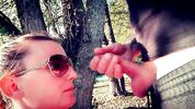 Жёстко ебёт в глубокую глотку телку в солнечных очках, ранним утром в лесу.