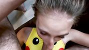 Несмотря на сломанную руку, парень находит в себе силы отжарит сексуальную русскую Пикачу с большими сиськами. Он наклоняет ее в позу раком и наяривает сзади стоя. Периодически чувак мастурбирует девахе вибратором, чтобы не пересохла от слишком грубой ебли. Судя по синякам на ее попе, чувак порой может не рассчитать силу, но в порыве страсти она этого не чувствует. После страстного секса девка предпочитает принять сперму в рот.