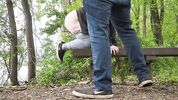 Жируха дает в лесу рандомному незнакомцу, который натягивает ее раком на скамейке.