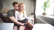 Блондинка только выглядит наивной, на самом деле она та еще коварная шлюшка. Захотела трахнуть компьютерщика и заманила его под предлогом, что совершенно не разбирается в компах. Парень помог ей, но тут же смекнул, что деваха-то просто хочет ебаться. Он тут же поднял ее короткую юбку, чтобы трахнуть в узкую щелку, а потом кончить на попку.
