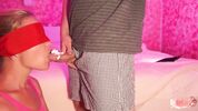Девушку с повязкой на глазах кормят сливками с члена, эта малышка любит сосать хуй и кушать сливки, вот же сладкая сучка.