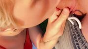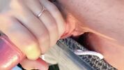 Фигуристая девушка в белых трусиках и тонком белом платье не боится перепачкаться в траве, поэтому смело улеглась на газон. Она показывает киску, и ее дружок с четками на руке смело ковыряется пальцем во влагалище. Блондинка тут же завелась и делает минет, после которого чувак неистово жарит ее сзади и кончает на попу.