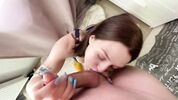 Лицо молодой русской милашки Саши покрыто спермой после страстного минета.