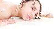 Лиз Джордан мокрая и скользкая, трахается в задницу с маслом с лысым и он кончает в рот.
