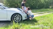 Отправившись погулять со своей девчонкой на природу, чувак поссорился с ней в машине. Высадив вредную сучку из тачки, он прижал ее животом к капоту и трахает схзди. Пусть знает, что если будет вредничать, то вместо леса и свежего воздуха получит грубую еблю на улице.