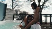 Мускулистый мачо трахает красивую жопастую испанку в джакузи на улице.