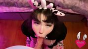 Минет в эротическом костюме Буренки с обилием спермы на лице.