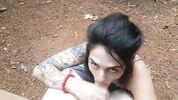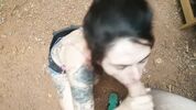 Телка с татуировками делает другу минет в парке, получает сперму на лицо и море ощущений.
