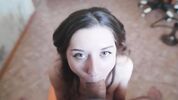 Молодая россиянка сосет огромный болт дома на коленях и глотает сперму.