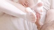 Молодая девушка с красивым телом и идеальными натуральными сиськами, классной задницей и стройными ногами, в белых колготах, лежит на кровати и ждет, пока парень разорвет их на заднице и трахнет через дырку. Но для разогрева, красотка дрочит ногами в колготах хуй. Футфетишист пальцами трахает её красивую нежную киску. И после фистинга пара достигает оргазма вместе и бойфренд спускает на задницу, получив много удовольствия.