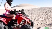 Латинка гоняет на квадроцикле по пустыне, показывает тверкинг и трахается с незнакомцем с парковки.