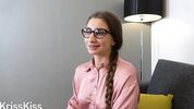 Сексуальная училка приглянулась папаше, и он решил хорошенько ее отъебенить. Мужик человек деловой, поэтому предлагает украинке Kriss Kiss деньги за "дополнительные" услуги. Девушка соглашается и с присущей учителям педантичностью приступает сначала к минету, а потом к позе наездницы. Оказалось скромная на вид девушка с косой не стыдится принимать самые развратные позы!