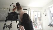 Не помог худенькой русской сестре с лампочкой, зато трахнул на стремянке.