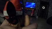 Сексуальная JuliaSQuirt получила свой новогодний подарок и хочет в ответ сделать сюрприз. Она надела красную шапочку Санты и кожаную черную маску. Опускаясь на колени в полутьме, девушка делает минет и садится на член в позе обратной наездницы. Потом она дрочит член, и партнер кончает на ее руки, после чего девица мастурбирует свою щель.