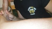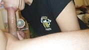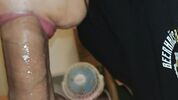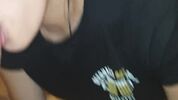 Нужно отдать должное смелости этой барышни - она не испугалась при виде большого члена, а принялась его облизывать. Она отсасывает огромный елдак, стараясь брать его в рот как можно глубже. Довольно быстро она заставляет его кончить на руки, и чуваку, наверное, досадно, что он так мало продержался.