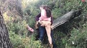 Нимфоманка в розовой пушистой кофте и шортах сняла парня, как настоящая пикаперша. Она показала ему сиськи прямо на улице, задрав пушистую розовую кофту. Затем спустила флисовые шорты с заячьим хвостиком и отсосала елдак в лесу, после чего оттрахала его на природе. Парень смачно оттрахал жопастую телку, оперев ее о бревно.