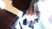 Молодая подчиненная в чулках ебется с шефом ради отпуска: трахает русскую сотрудницу на столе и кончает на киску.