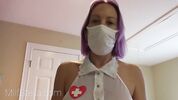 Эта похабная медсестра в своем полупрозрачном секс-костюме с чулочками приперлась к пациенту не просто так. Она собирается вылечить его от ковида в рамках эксперимента, который должен доказать, что женская пизда - лучшее лекарство от всех болезней. Поэтому дамочка смело насаживается на болт и трахает чувака, разрешая под конец щедро забрызгать ее спермой.
