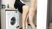 Присунул хуй сзади, пока она готовила: русские ебутся стоя, трахает худую длинноногую девку стоя
