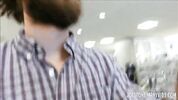 Тёлка прогулялась в магазин купить футболку и пососать хуй бородатому очкарику.