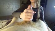 Соседка дрочит волосатый хуй и просит кончить на жопу, в позе раком.