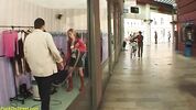 Стройная продавщица сосет хуй покупателя, ебется в анал и дает кончить на попку.