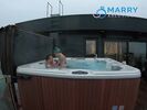 Пышка в купальнике впервые сует язык в очко мужа в джакузи во дворе дома.