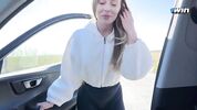 Русская девка просит подвезти автостопом до города, а за поездку платит сексом.