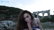 Рыжая красотка сосет член на прогулке: Sofia Simens показывает попу и грудь на природе, делает минет, сперма на лице
