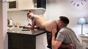 Выпив вина на кухне, рыжая русская шлюха поняла, что хочет ебаться. Она пригласила в гости друга, но ее писька так чесалась, что она начала мастурбировать, не дождавшись партнера. Наконец чувак пришел и удовлетворил пьяную давалку в спущенных колготках, которая специально устроилась поудобнее раком на стуле.