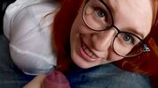 Оказывается, староста не просто ботанша в больших круглых очках - она похотливая сучка. Прямо во время занятий рыжая русская отличница забралась под стол, нырнула в ширинку и делает минет. Ее не смущает минет в публичном месте, и она с удовольствием глотает сперму.