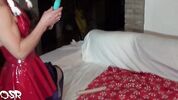 Секс на Новый год с бабой в красном латексном платье и самотыками.