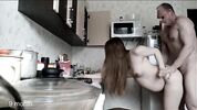 Секс с русской беременной женой на 9 месяце на кухне с кремпаем в киске.