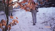 Татуированная сибирячка в ушанке и очках сосет член в зимнем снежном лесу.